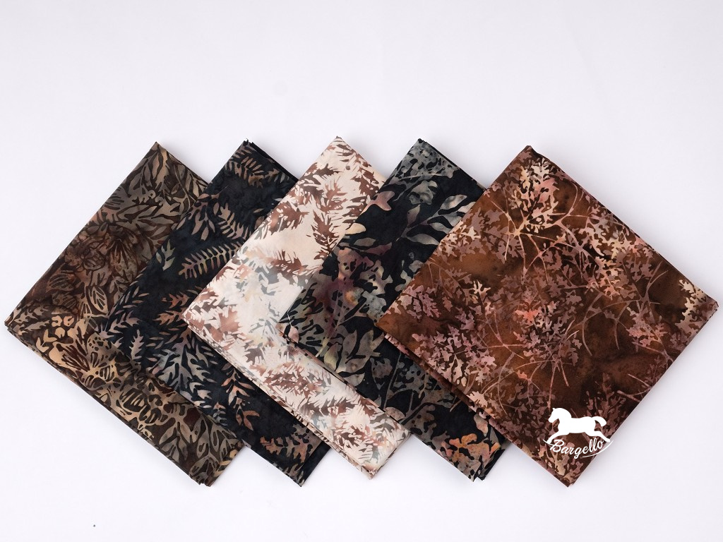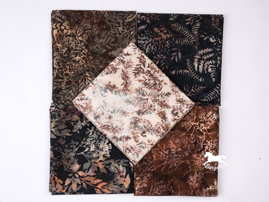 Balíček pěti vzájemně barevně sladěných batikovaných látek, každý kus měří 50 x 55 cm.Doplňkové parametry