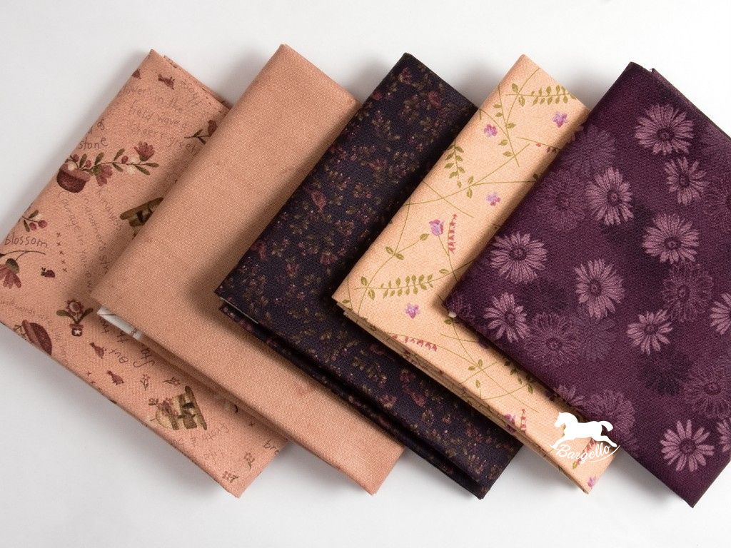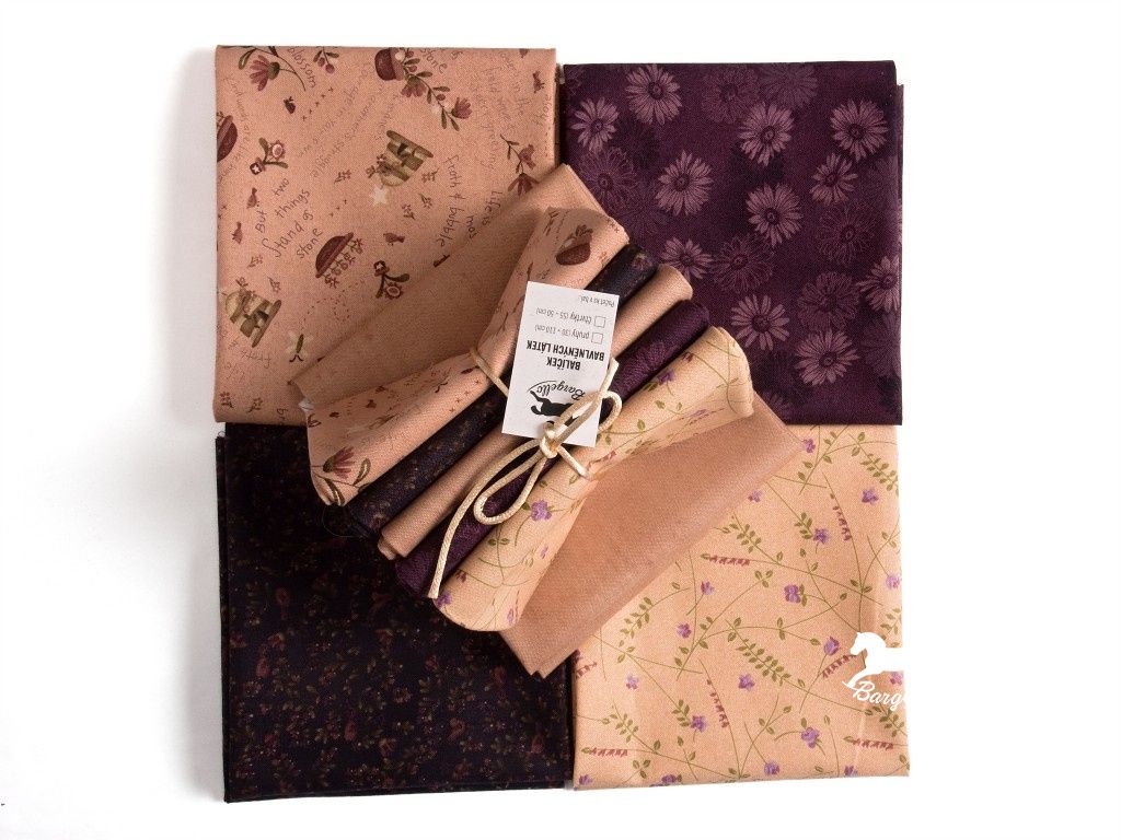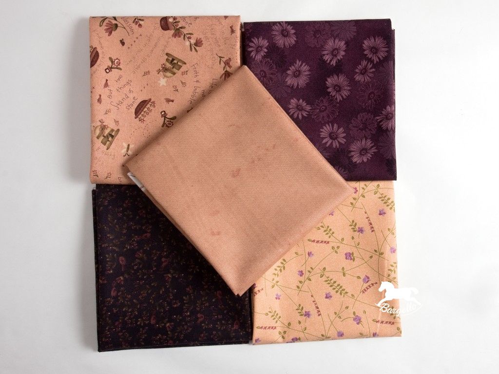 Barevně laděný balíček bavlněných látek inspirovaný odstíny batátů. Kombinace fialové a pudrově růžové vytváří jemný, elegantní celek vhodný pro romantické i moderní projekty.