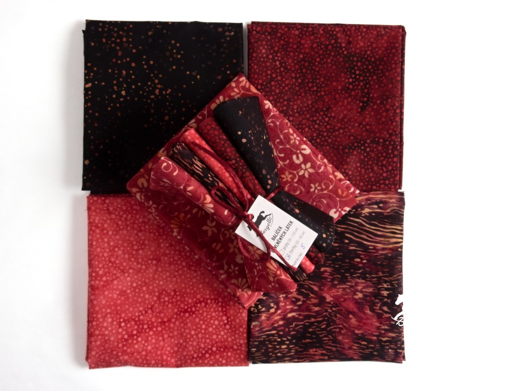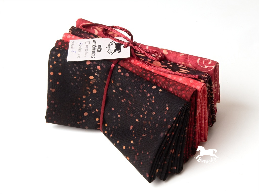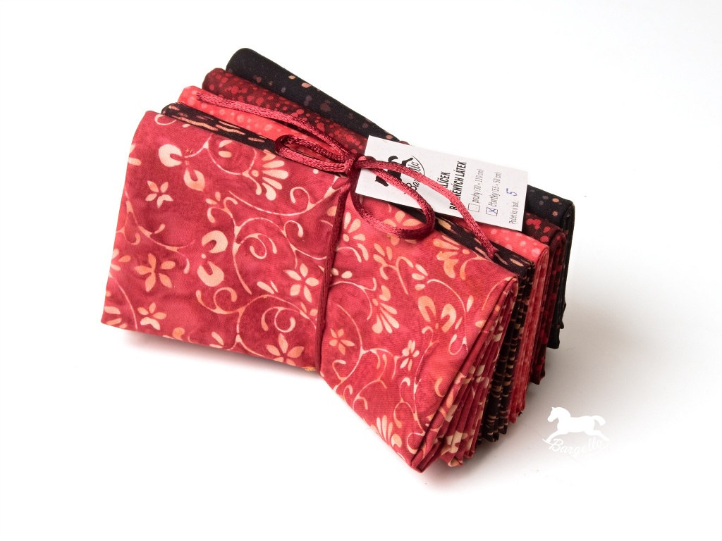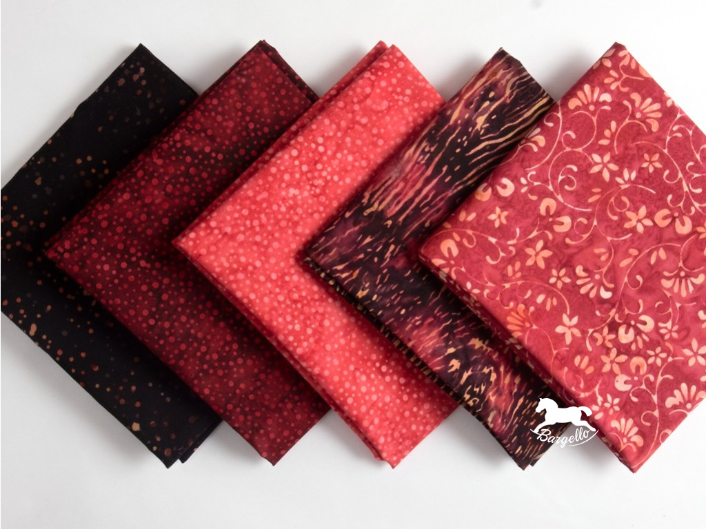 Látkový balíček Cardinal je pečlivě sestavený výběr pěti batikovaných látek z oblíbených kolekcí Bali Handpaints a Bali Pops od renomovaného výrobce Hoffman. Tyto látky jsou známé svou vysokou kvalitou, jemnou strukturou a jedinečnými ručně batikovanými vzory.