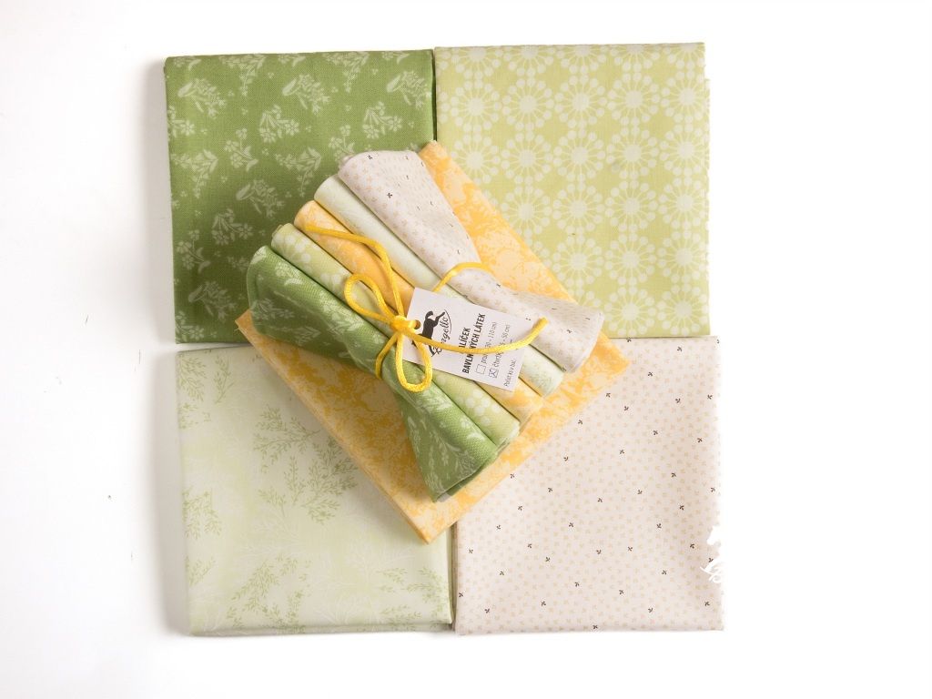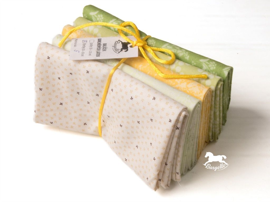 Jemně sladěný balíček bavlněných látek inspirovaný jarní přírodou. Svěží odstíny zelené, doplněné o slunečnou žlutou a neutrální smetanově bílou, vytvářejí harmonickou kombinaci ideální pro jarní optimistické projekty.