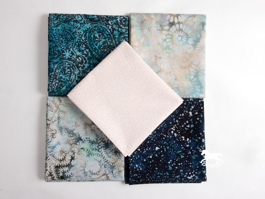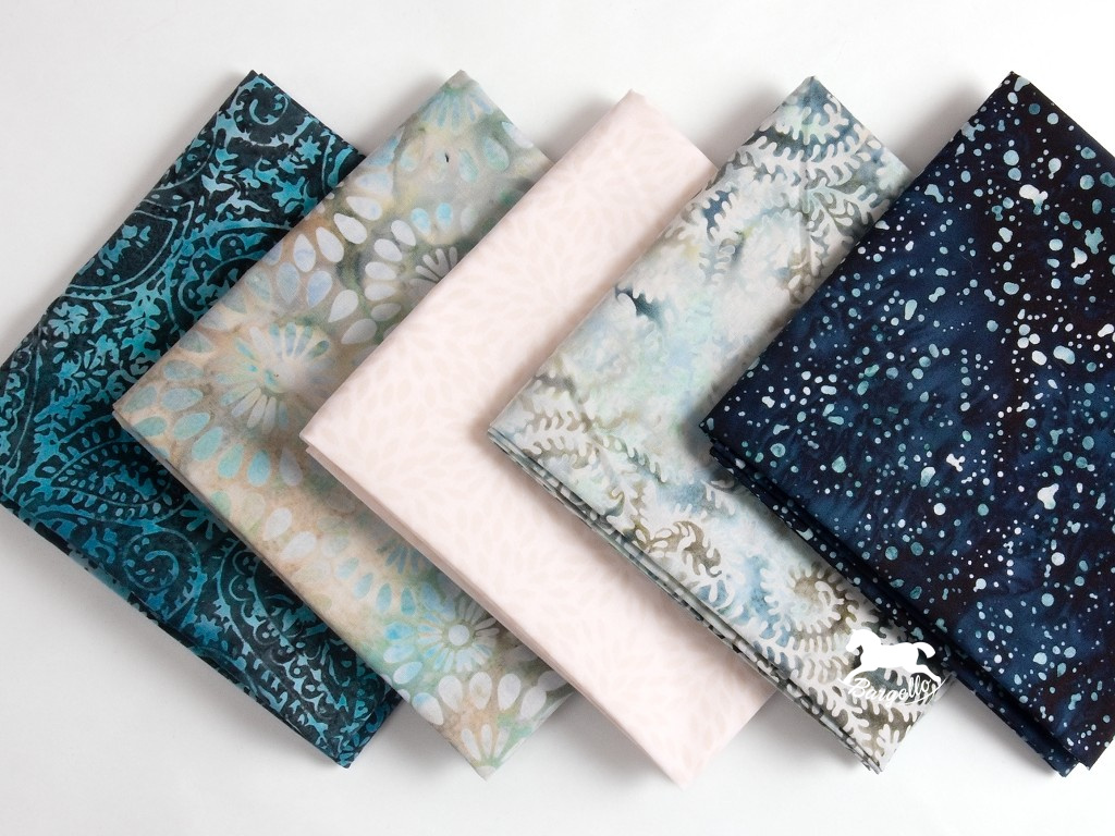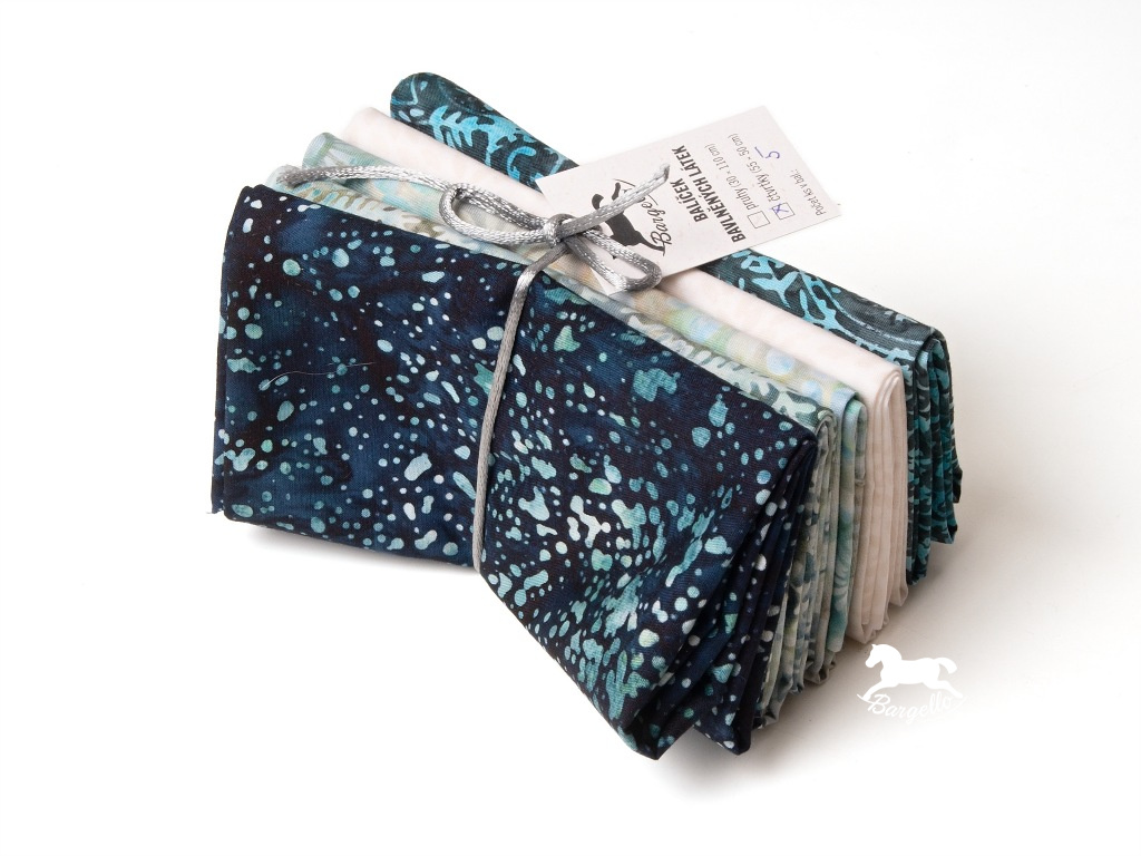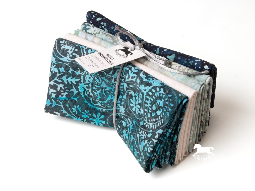 Látkový balíček Lapis je harmonicky sestavený výběr batikovaných látek z kolekce Bali Handpaints od renomovaného výrobce Hoffman. Barevná paleta je laděna do studených odstínů modré a šedomodré, které doplňuje jemná bílá. Celek působí elegantně, klidně a připomíná strukturu neopracovaného drahého kamene, podle kterého nese balíček své jméno.
