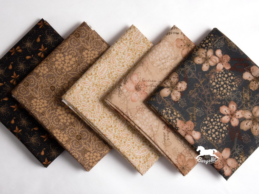 Elegantní balíček bavlněných látek Orchard nabízí pečlivě sladěnou kombinaci béžové, růžové, černé, taupe a šedomodré barvy, které společně vytvářejí jemný, nadčasový a velmi vkusný celek. Barevná paleta působí klidně a sofistikovaně, díky čemuž je balíček ideální jak pro tradiční, tak i moderně laděné šicí projekty.