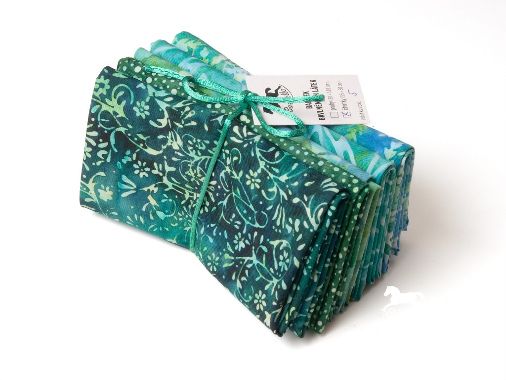 Tento balíček batikovaných látek z kolekcí Bali Handpaint a Bali Dots přináší harmonickou kombinaci modrých a zelených odstínů, které dohromady připomínají klidnou a tajemnou hladinu horského plesa. Přechody od blankytně modré přes tyrkysovou až po temně zelenou vytvářejí uklidňující, přírodní barevnou paletu vhodnou pro patchworkové i dekorativní projekty.