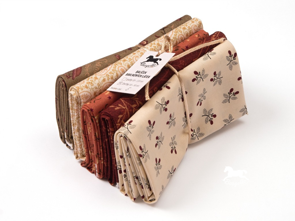 Balíček v krásné neotřelé kombinaci pěti látek, prostě klasika. Každý kus měří 50 x 55 cm.Doplňkové parametry