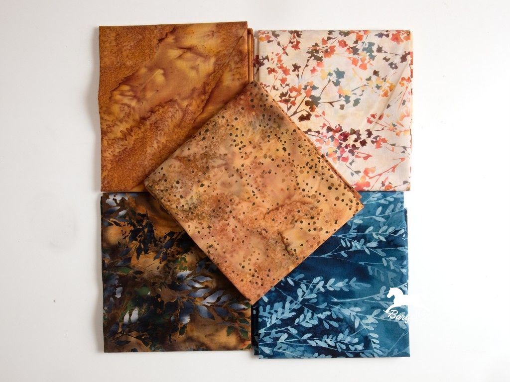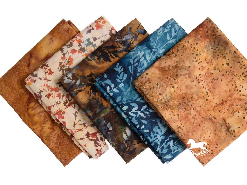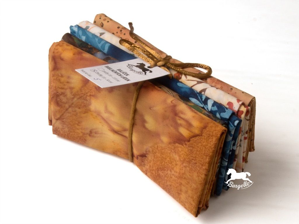Balíček látek Rozbřesk je laděný do příjemných přírodních tónů medově hnědé a tmavé šedomodré, které působí klidně, elegantně a nadčasově. Obsahuje 5 kusů látek o velikosti cca 50 × 55 cm, ideálních pro patchwork, quilting i další kreativní tvoření.