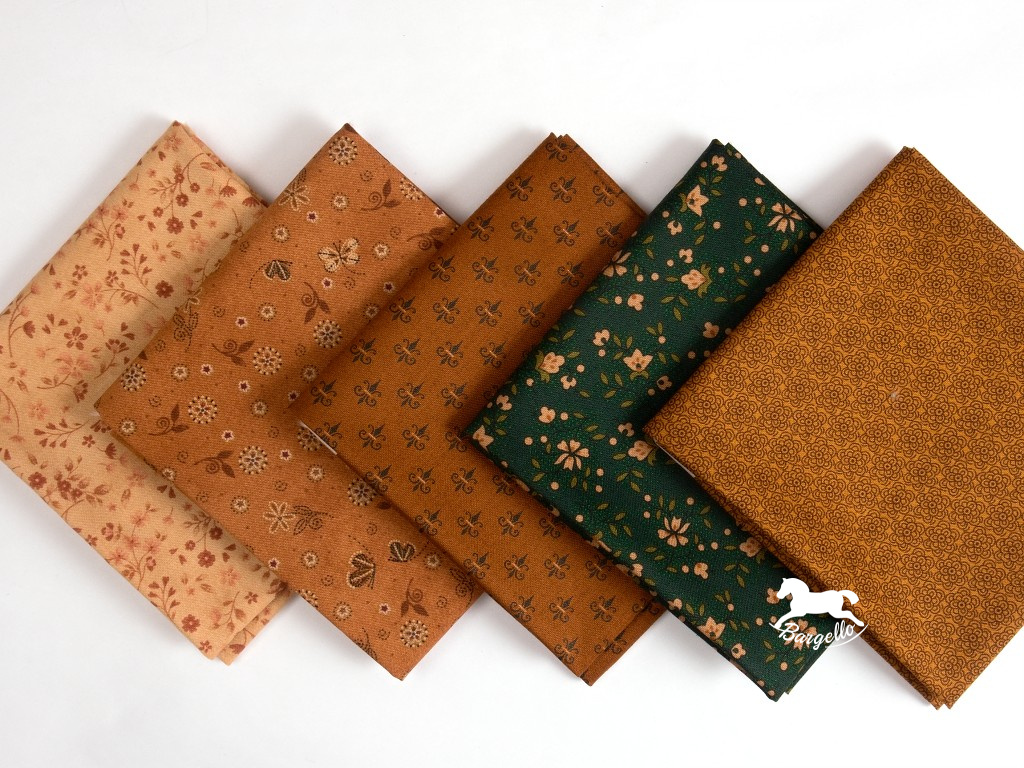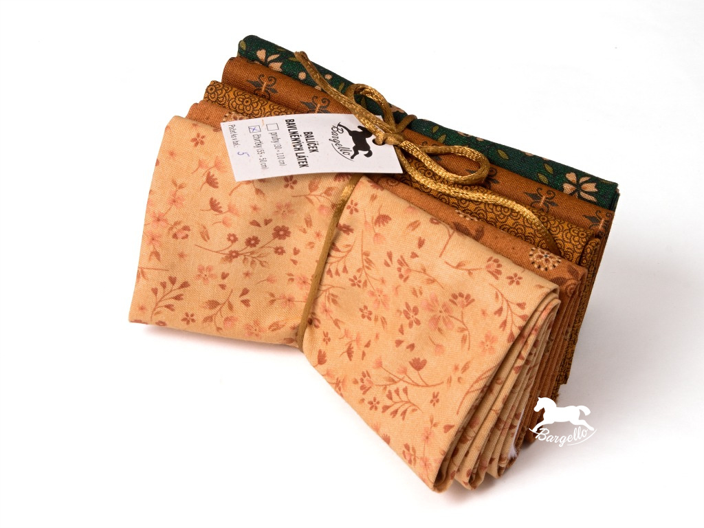 Zlátnoucí je nádherný balíček látek z kolekcí firmy Henry Glass, který přináší teplé, sluncem prozářené tóny do vašich šicích projektů. Balíček obsahuje pět čtvrtek o rozměru 50 × 55 cm vyrobených ze 100% prémiové bavlny s gramáží 145 g/m², látky jsou příjemné na dotek a snadno se s nimi pracuje.