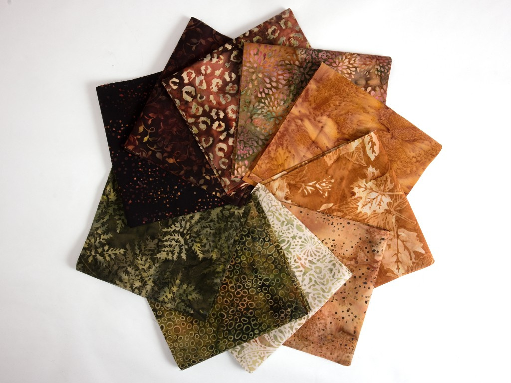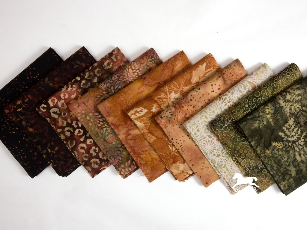 Balíček látek Africa nabízí harmonickou paletu barev inspirovanou přírodou afrického kontinentu. Batikované látky z kolekce Handpaint od renomované firmy Hoffman se vyznačují jemnými přechody barev a originálním vzhledem.