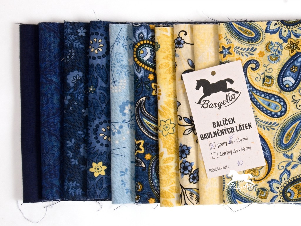 Kontrast výrazné modré a vanilkově žluté dodává projektům svěží a moderní vzhled. Balíček je vhodný pro patchwork, bytové doplňky i další kreativní šití. Látky z této sady jsou navíc k dispozici také v metráži.