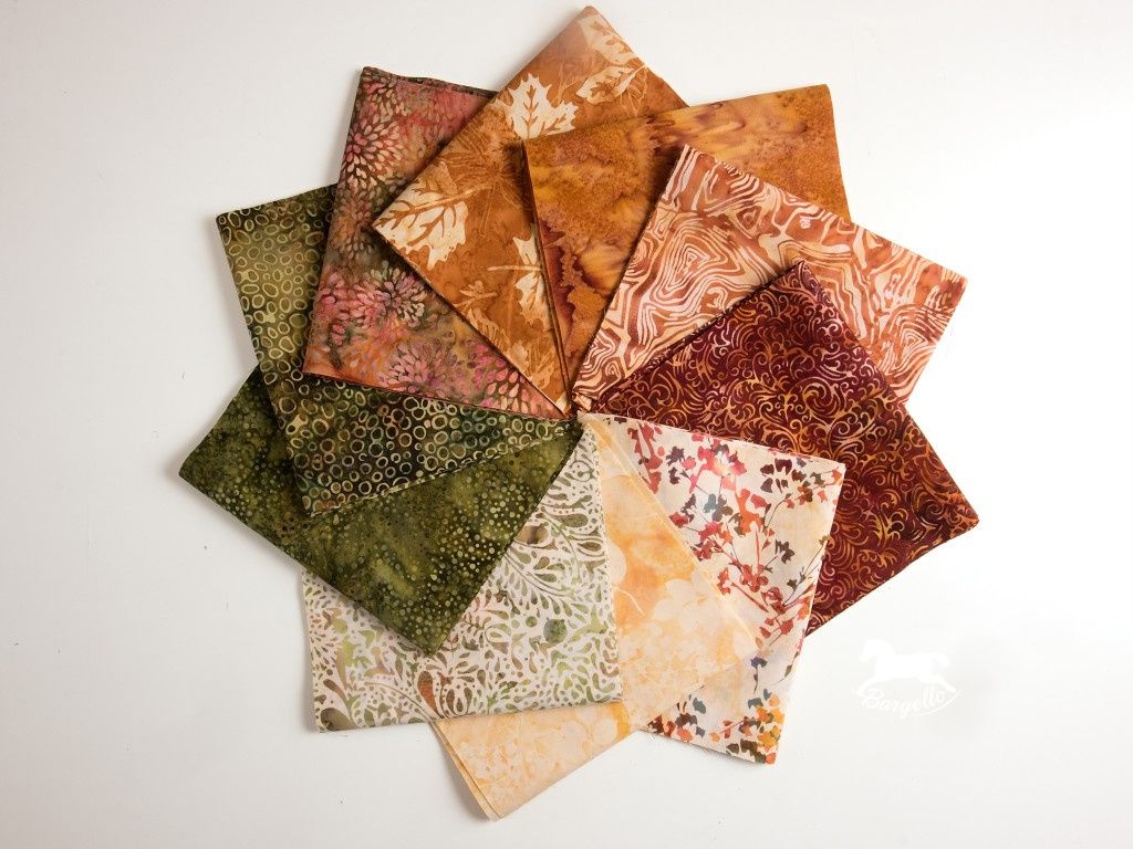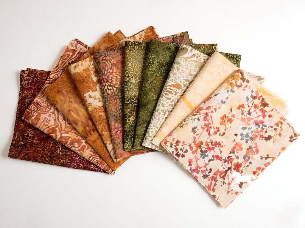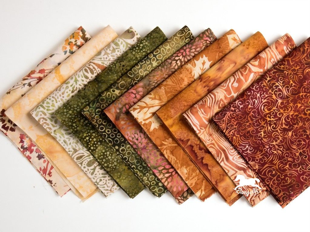 Látky pocházejí z kolekcí Bali Dots a Bali Handpaints od renomované značky Hoffman, která je vyhlášená svou precizní ruční batikou a kvalitním zpracováním.