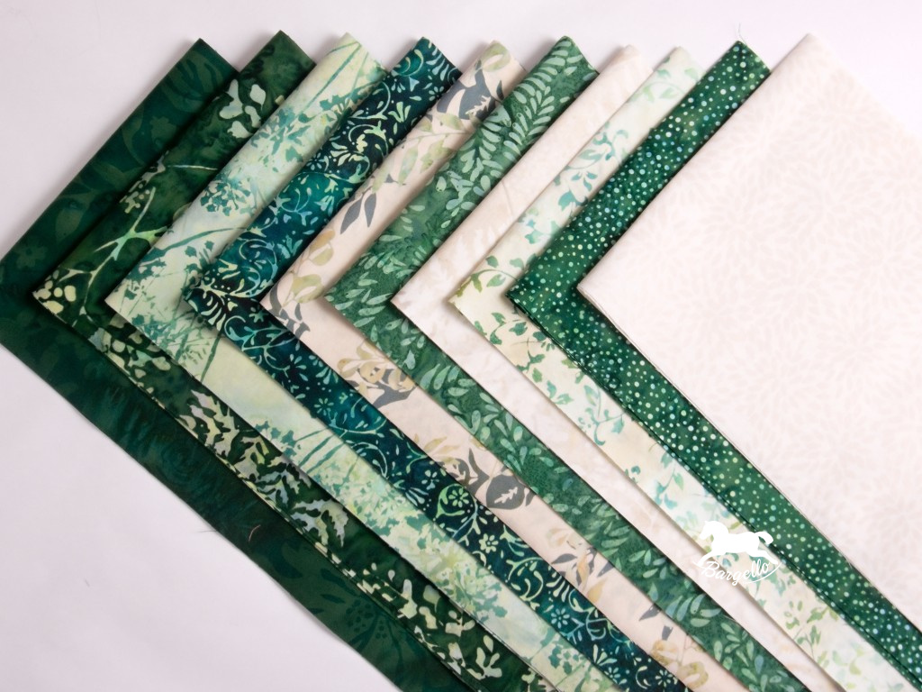 Díky vyvážené kombinaci tmavých a světlých látek je balíček Smaragd skvělou volbou pro tvorbu bloků, menších quiltů, polštářů, běhounů na stůl nebo jiných patchworkových projektů.