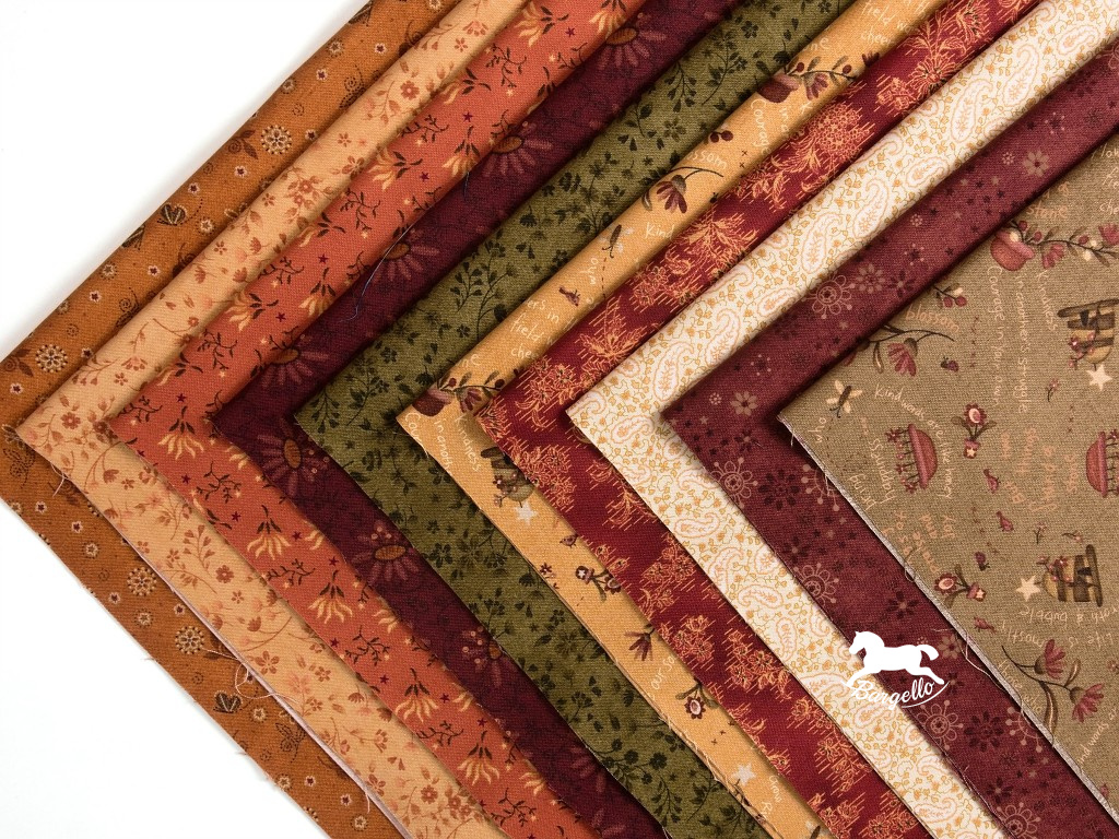 Tento krásně sladěný balíček látek je inspirovaný hřejivou atmosférou podzimu. Obsahuje pruhy z různých kolekcí značky Henry Glass, které dohromady vytvářejí harmonickou paletu teplých podzimních barev – od vínově červených, hnědých a okrových tónů až po tlumenou růžovou, olivovou a smetanovou.