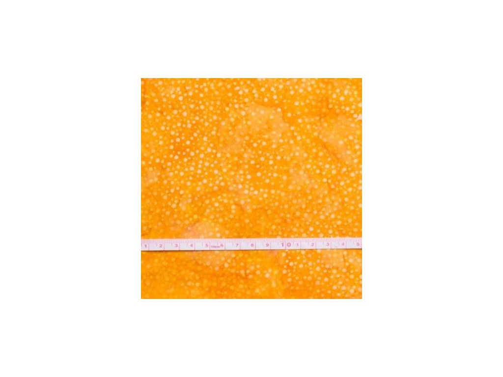 Žloutkově žlutá batikovaná látka Bali batik Dots, posledních 42 cm vcelku s 30% slevou.