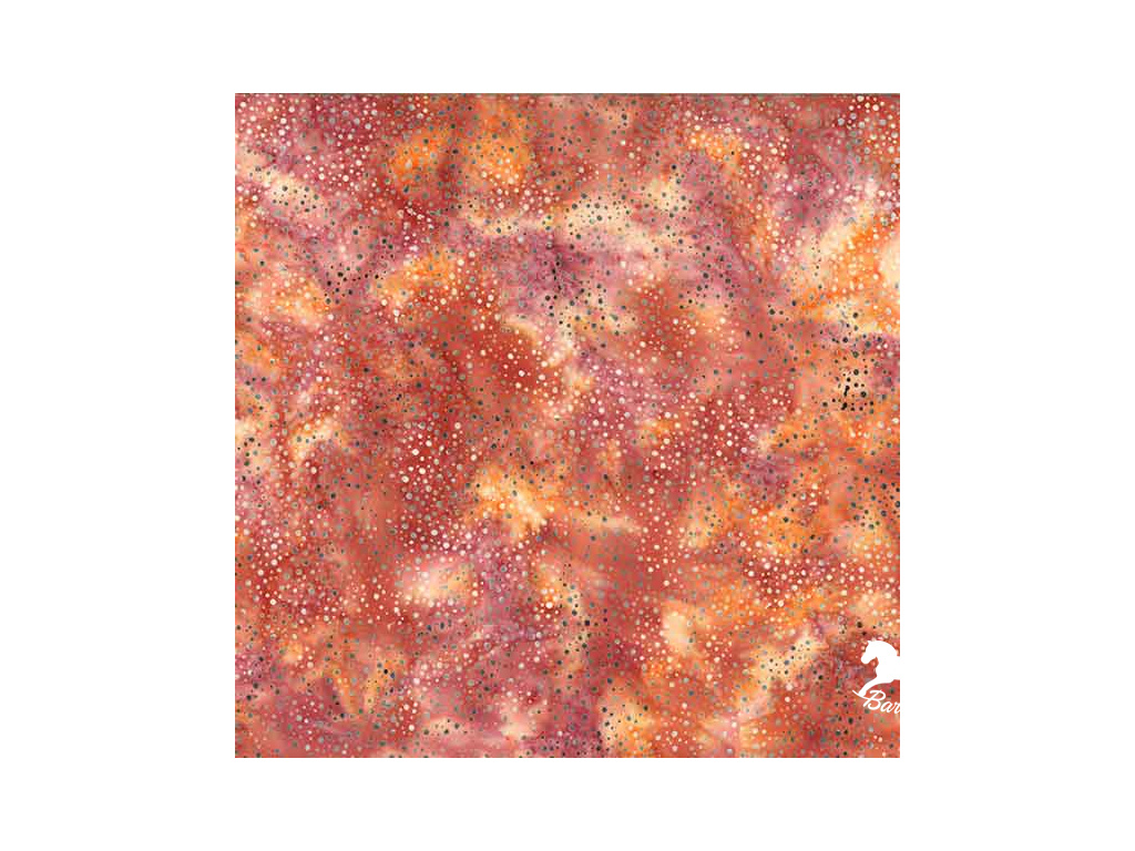 Růžovo oranžová batikovaná látka s šedomodrými puntíky z kolekce Bali Dots, 100% bavlna, šíře 110 cm.Doplňkové parametry