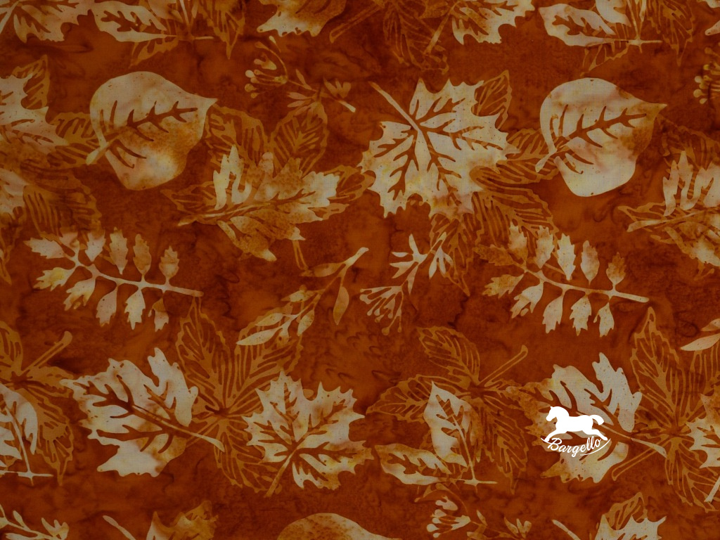 Medově hnědá batikovaná látka s béžovými listy,100% bavlna, šíře 110 cm.Doplňkové parametry