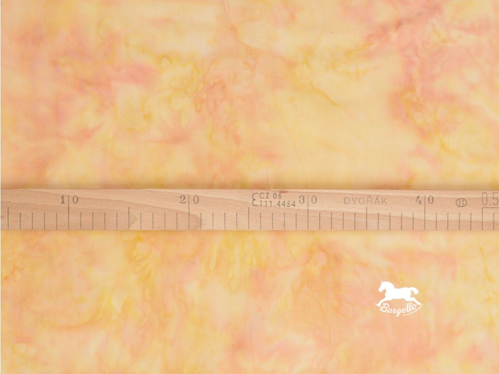Růžovo-žlutá batikovaná látka z kolekce Bali Hand - Dyed, 100% bavlna, šíře 110 cm.
