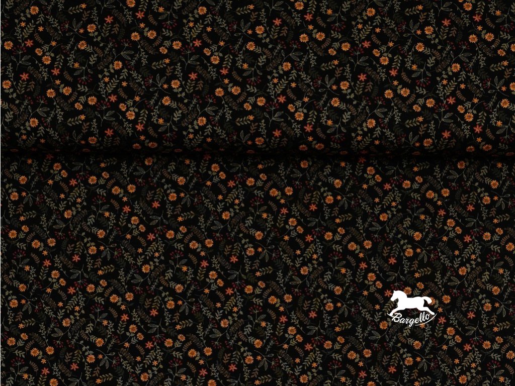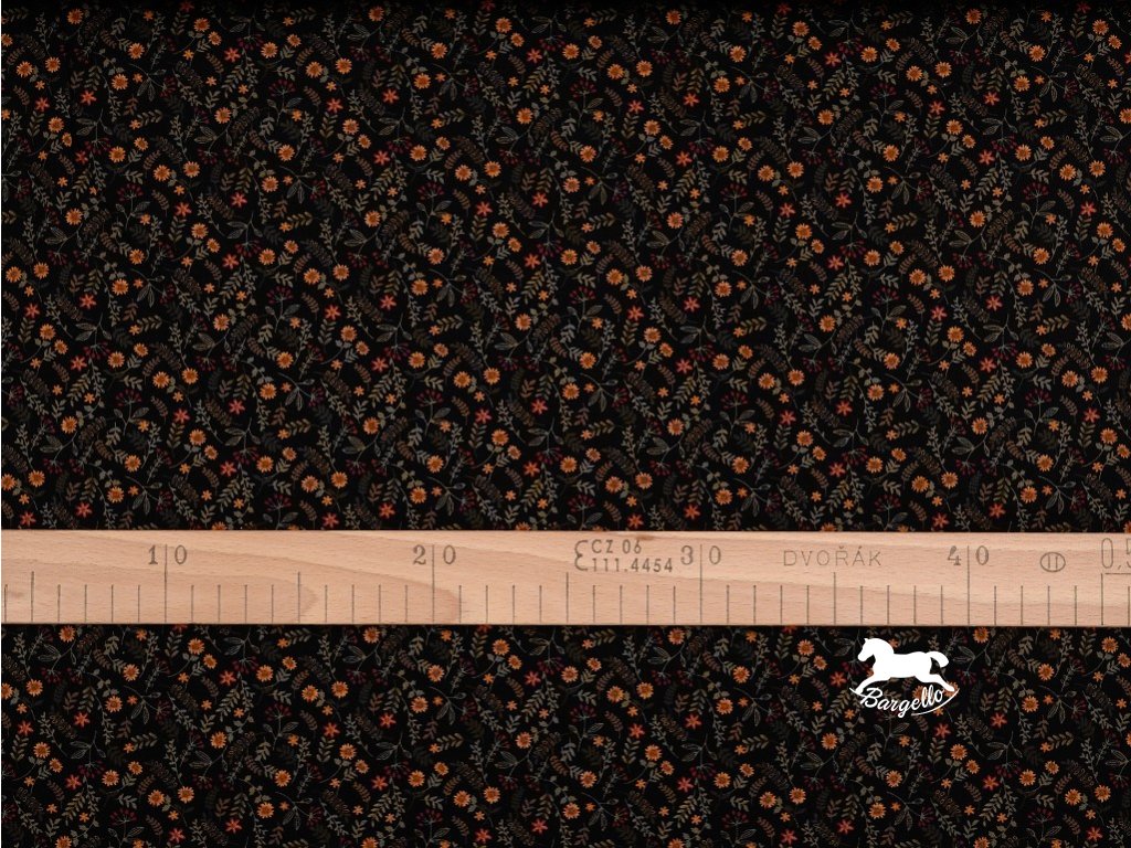Černá bavlněná látka s drobným kytičkovým vzorem z kolekce Cavalier Crows. Posledních 17 cm vcelku s 30% slevou.
