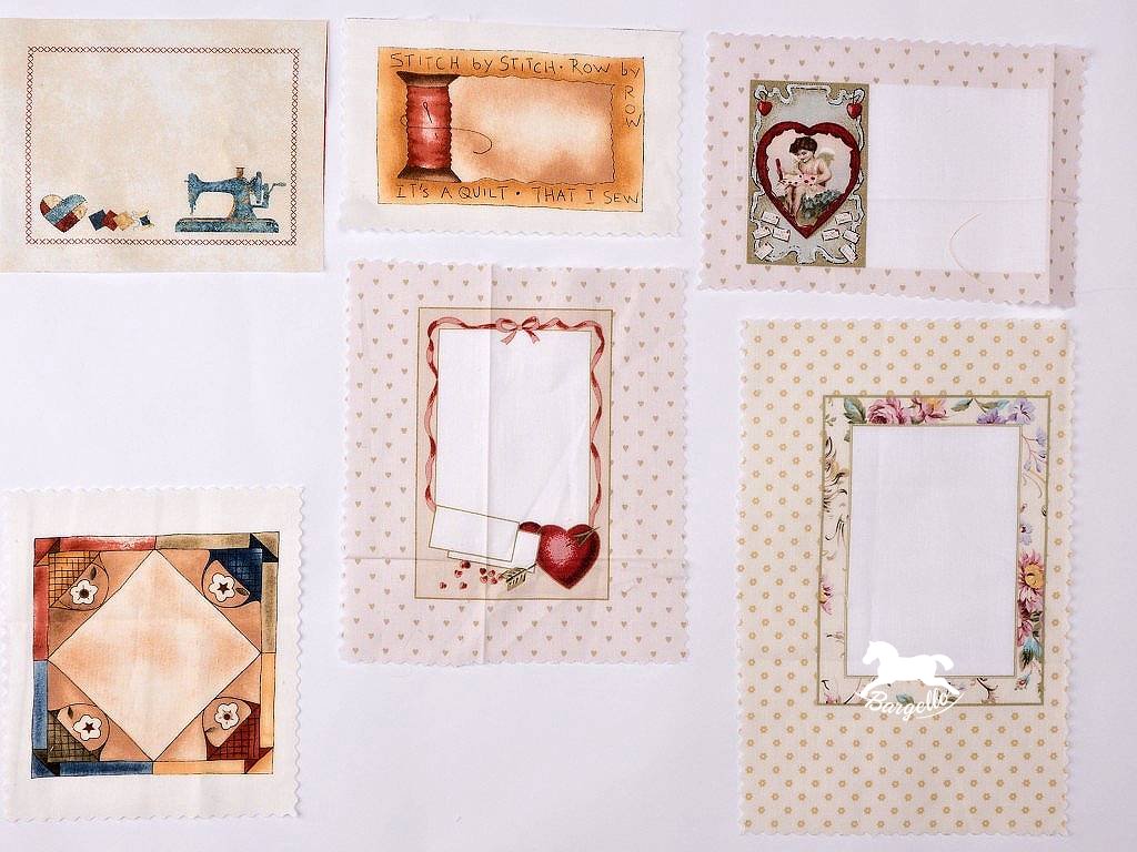 Jmenovky slouží především k označení quiltů. Lze samozřejmě použít i k jiným účelům -  výrobě jmenovek k dárkům, zakomponováním do quiltu nebo polštáře, k ušití různých drobností, prostírání nebo "podkafíček". Balíček obsahuje celkem šest různých jmenovek. 100% bavlna.