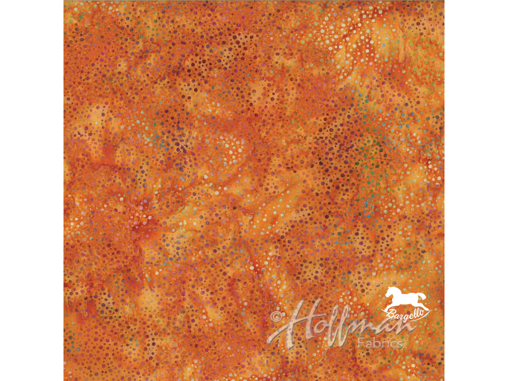 Čtvrtka o velikosti 50x55 cm, Fat Quarter, z oranžové batikované látky s různobarevnými puntíky z kolekce Bali Dots, 100% bavlna. Skvělá volba pro drobné projekty. 100% bavlna. Nechybí vám kousek této látky? Kupte si Fat Quarter.