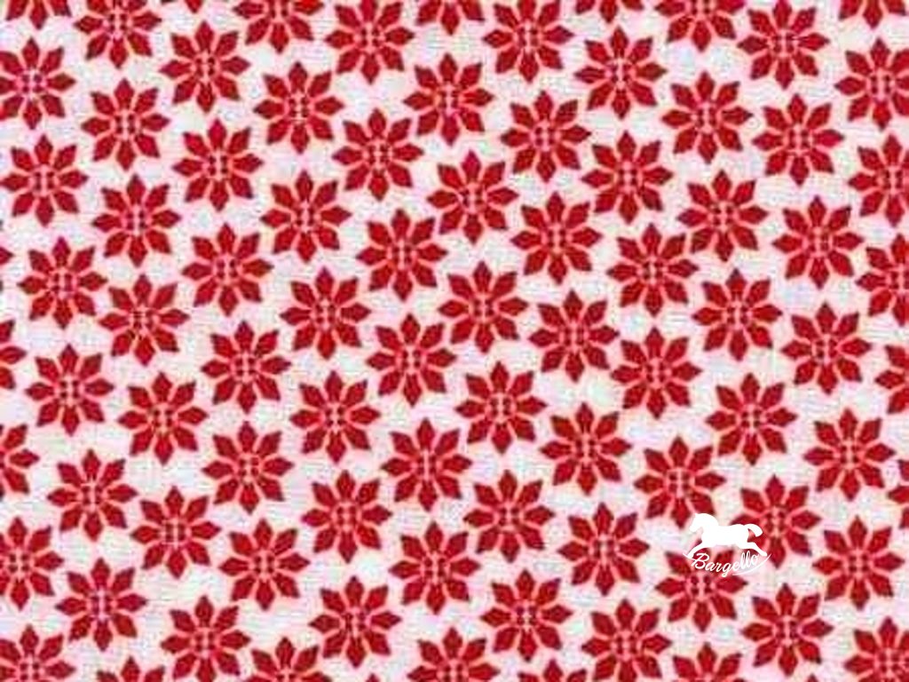 Bílá látka s červenými kytičkami z vánoční kolekce, šíře 110 cm, 100% bavlna. Čtverec o velikosti 50 x 55 cm.