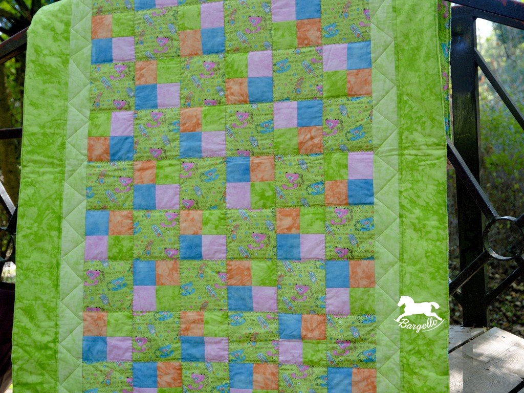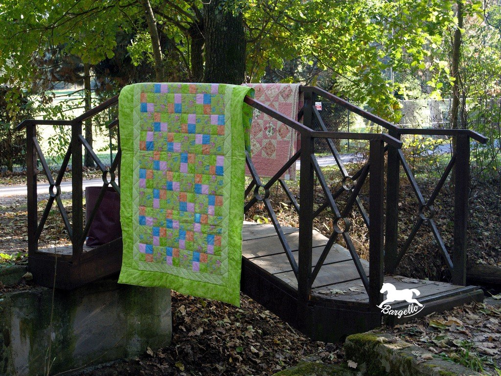 Tato deka v zářivých barvách dokazuje, že i jednoduchý vzor může vypadat zajímavě. Deka je prošita ozdobným stehem na stroji, jako výplň bylo použito polyesterové rouno, olemování bylo řešeno založením. Zadní díl je z tištěné bavlny plné telefonů. Celá deka je ušita pouze z kvalitních zahraničních látek. Velikost deky je 200 x 120 cm.Video youtube