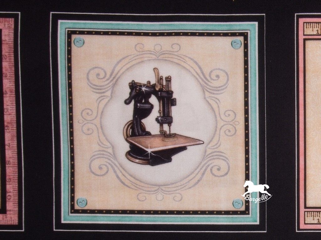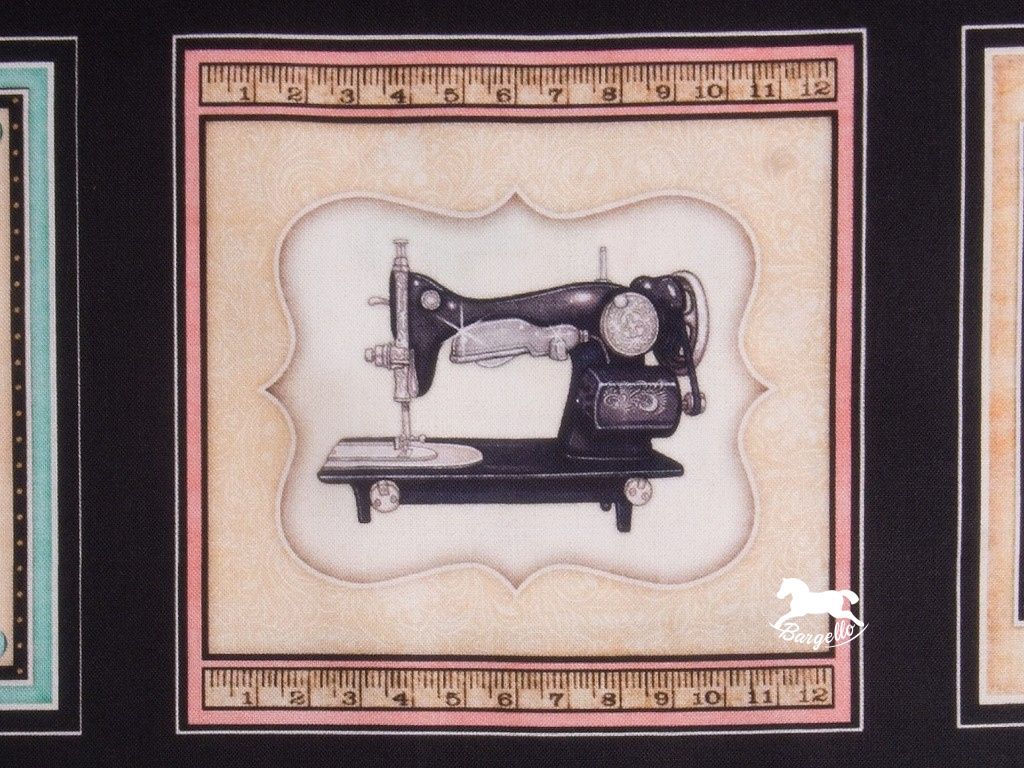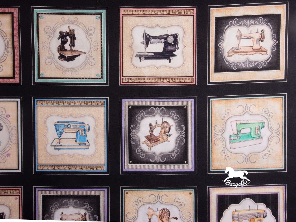 Oblíbená okénková látka plná šicích strojů z kolekce Tailor Made. Jedno opakování měří 60 cm a obsahuje celkem 28 obrázků retro šicích strojů. Čtverec s obrázkem měří 13 x 13 cm.Doplňkové parametry